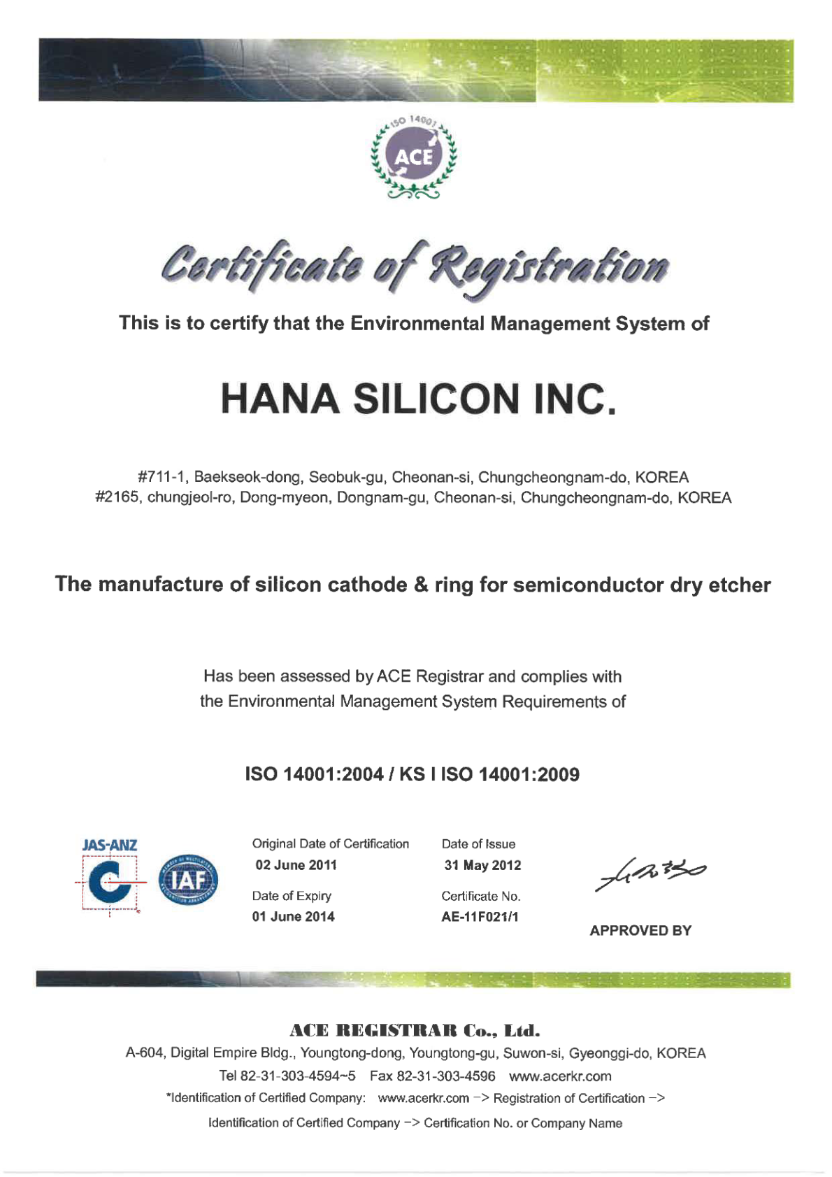 미국 AMAT社 Global supplier 인증