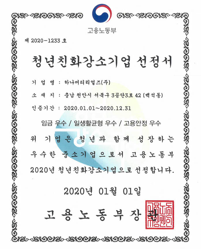청년친화강소기업 선정 (고용노동부)